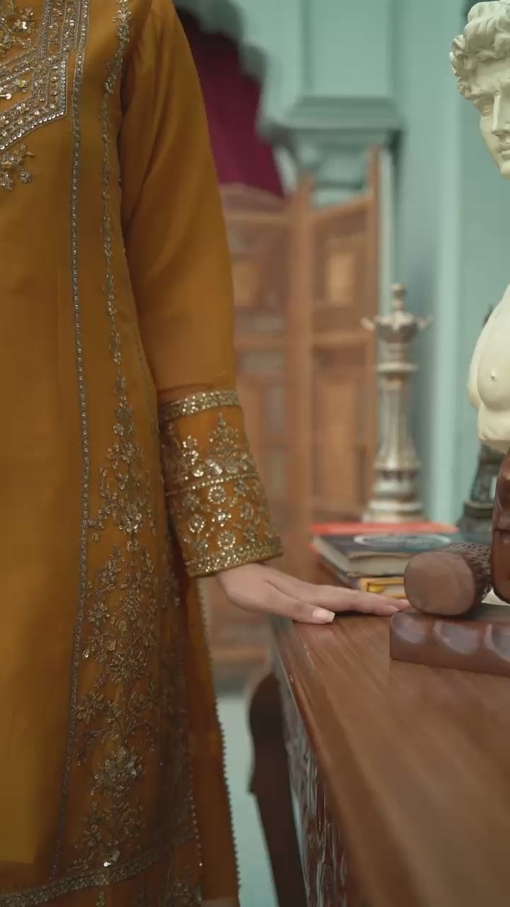 Mustard-Gold Crinkle Chiffon 3 pc Suit